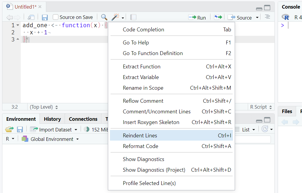 xin your environment was made in a certain way and contains certain information, but does it? What if you overwrote it at some point and forgot? Best to wipe the slate clean and rebuild it from scratch. Jenny Bryan has written an explainer.↩︎You can ‘snap focus’ to the script and console panes with the pre-existing shortcuts Control + 1 and Control + 2. My next most-used pane is the terminal, so I’ve re-mapped the shortcut to Control + 3.↩︎