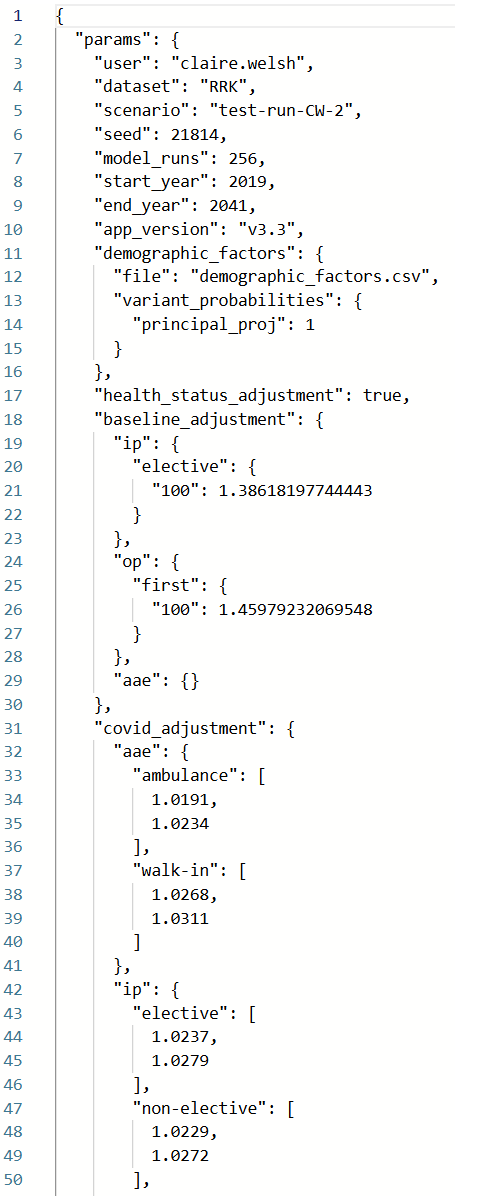 Parameters JSON passed to model via API